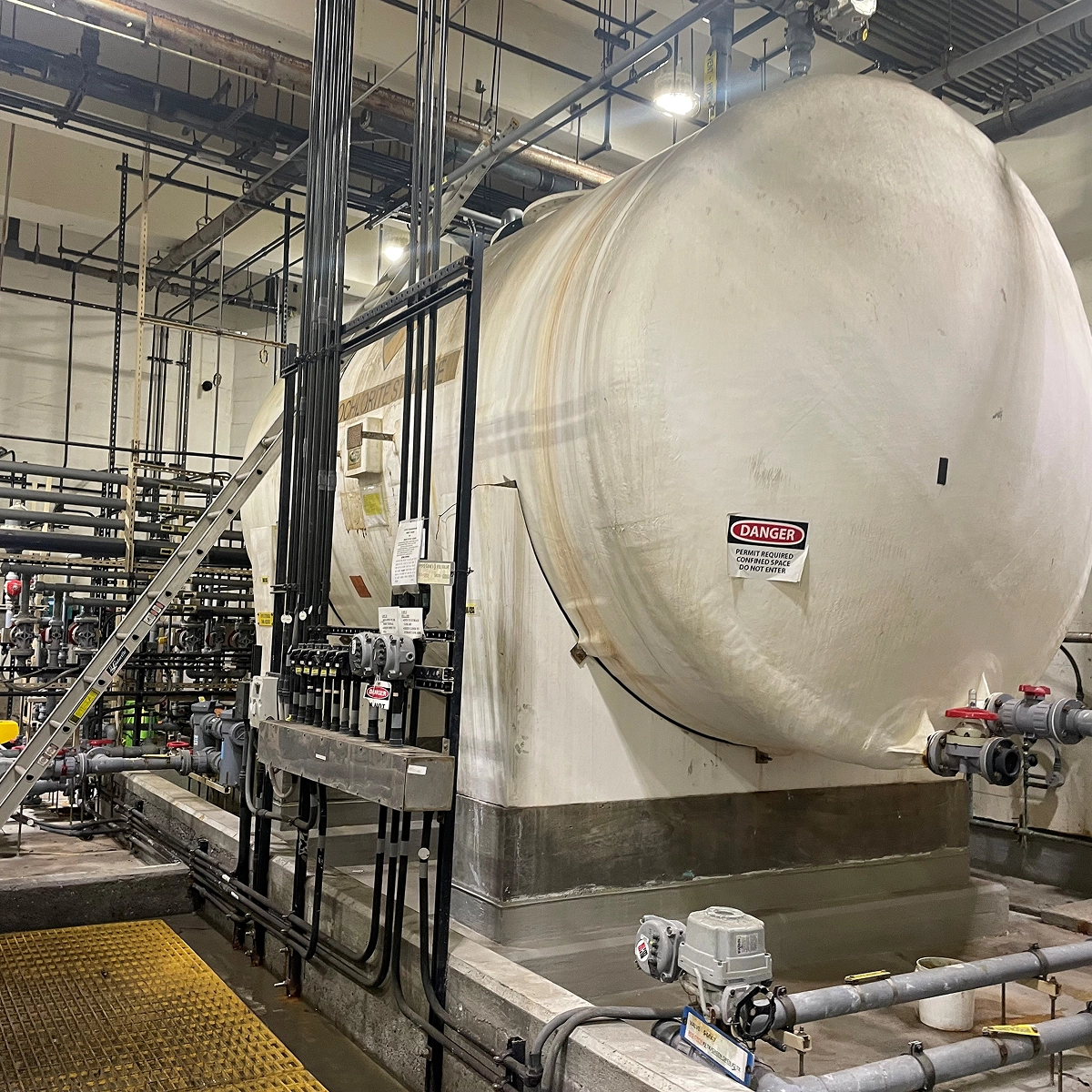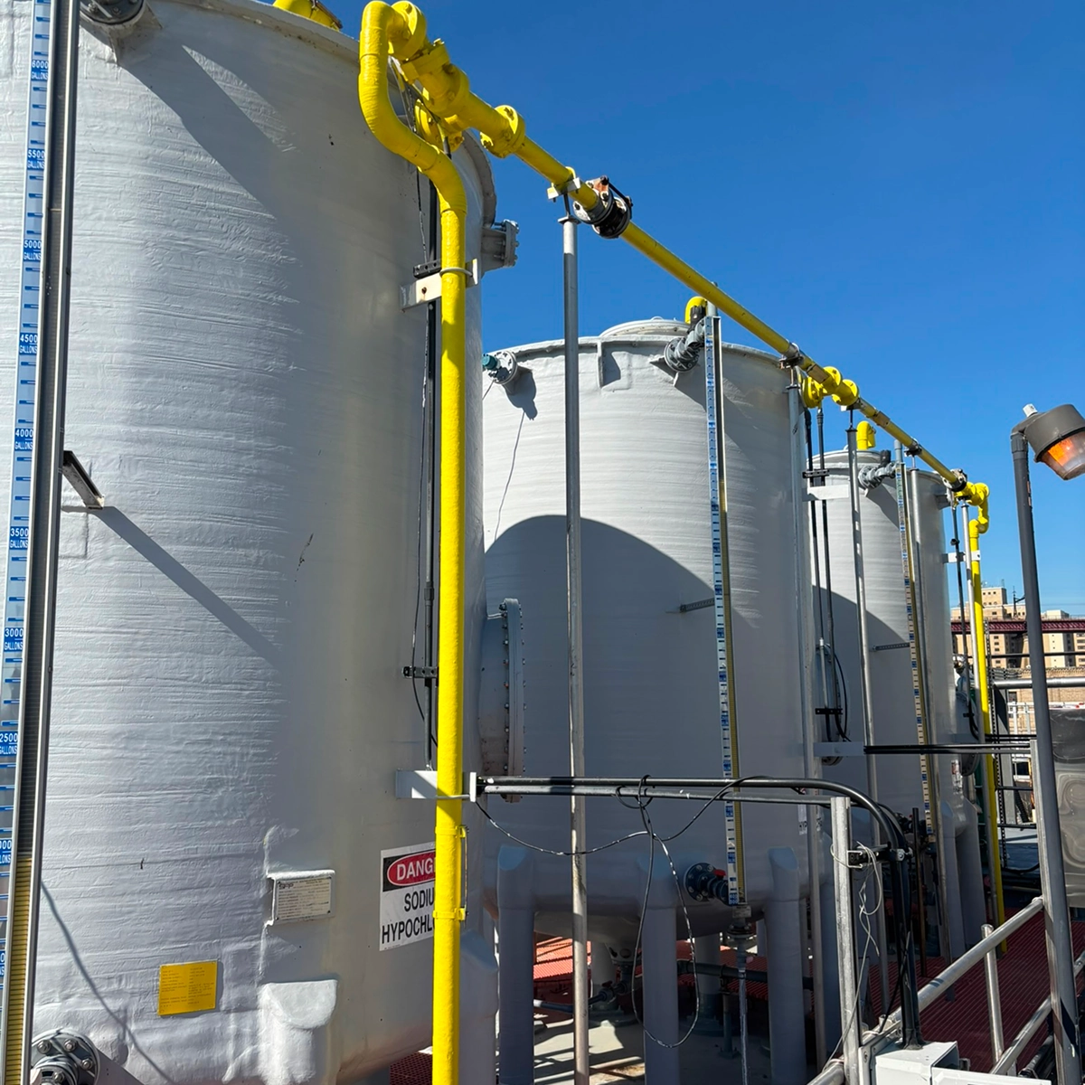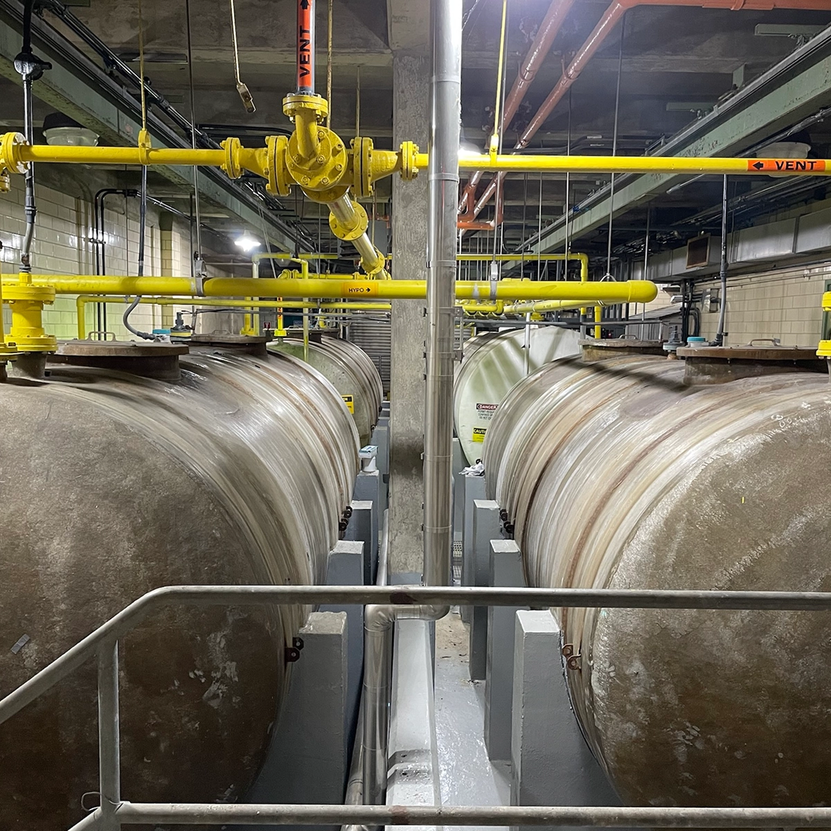 The Challenge: The Department of Environmental Protection operates one of the largest network of wastewater treatment facilities in the world. To ensure the safe and reliable treatment of millions of gallons of wastewater daily, the DEP relies on the availability and storage of critical treatment chemicals such as sodium hypochlorite, ferric chloride, sodium hydroxide and sodium bisulfate. These chemicals, while essential to the wastewater treatment process, present significant hazards if not properly stored and maintained. The DEP required a trusted contractor who was capable of performing on-call maintenance, repair, and upgrades for this critical system under a work-order based contract.
